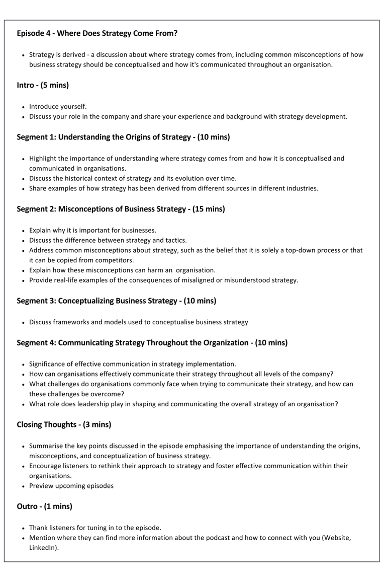 Here's an example of how to come up with an idea for an episode and write a script that will ensure a consistent length of time.